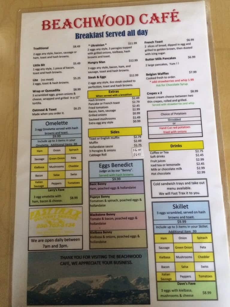 Beachwood Cafe Menu Menu For Beachwood Cafe Courtenay Courtenay